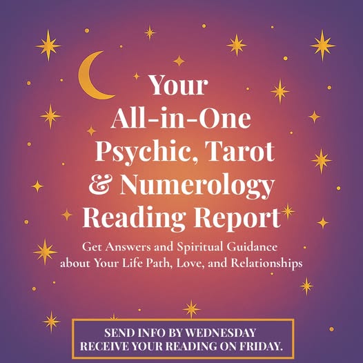 My All-in-One Readings are designed to offer a complete, well-rounded perspective by combining intuitive insight, tarot, and numerology into one coherent report. Rather than focusing on a single method, this approach allows different layers of information to come together naturally, often confirming, deepening, or clarifying the same themes from multiple angles.